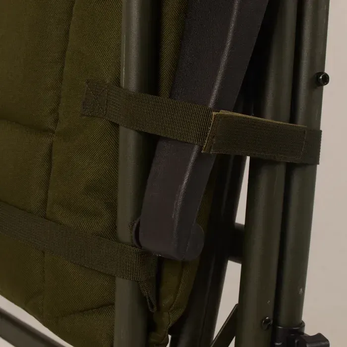 The chair features a 3D DuraDore mattress which is air pocketed for added comfort and is both luxurious and hard-wearing and sports a carpy green finish with subtle Solar branding, key characteristics of an angling chair.