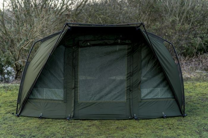 The integral peak with rain drip guard offers even more protection and is a perfect size to cover your levelbed and kit from the elements. The bivvy also features a zip on/off front panel complete with mozzy side windows and fully customisable front door system.
